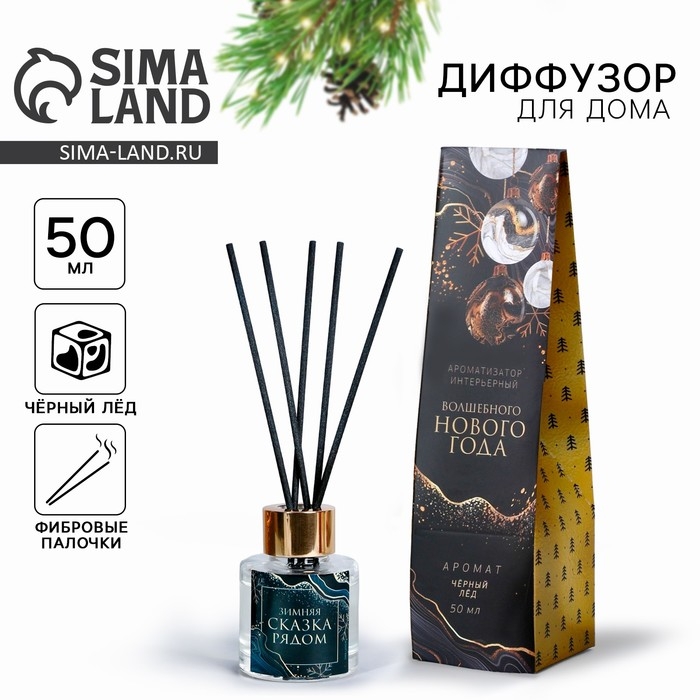 Аромадиффузор ароматический палочки «Новогодняя коллекция: Сказка рядом», 50 мл, аромат черного льда - для дома, кабинета и офиса. Ароматные палочки и диффузоры являются современным модным элементом интерьера. Ароматический диффузор создаёт комфорт и притягательную ауру в помещении.