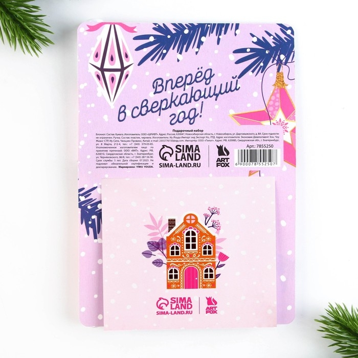 Подарочный набор новогодний «Теплых моментов» блокнот 90х90 и ручка пластик