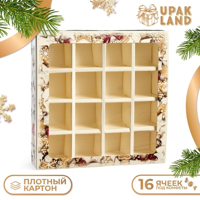 Коробка для конфет на 16 штук - идеальное упаковочное решение для ваших любимых сладостей. Элегантный и компактный дизайн этой коробки делает её идеальным подарком или дополнением к любому особенному моменту. Вмещает 16 вкусных конфет, предлагая их вам в стильной упаковке, готовой к подарку.