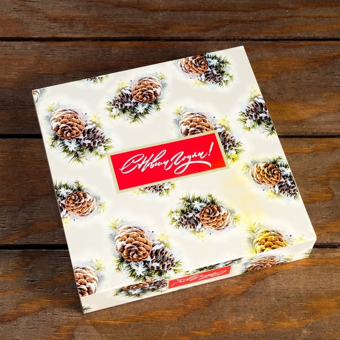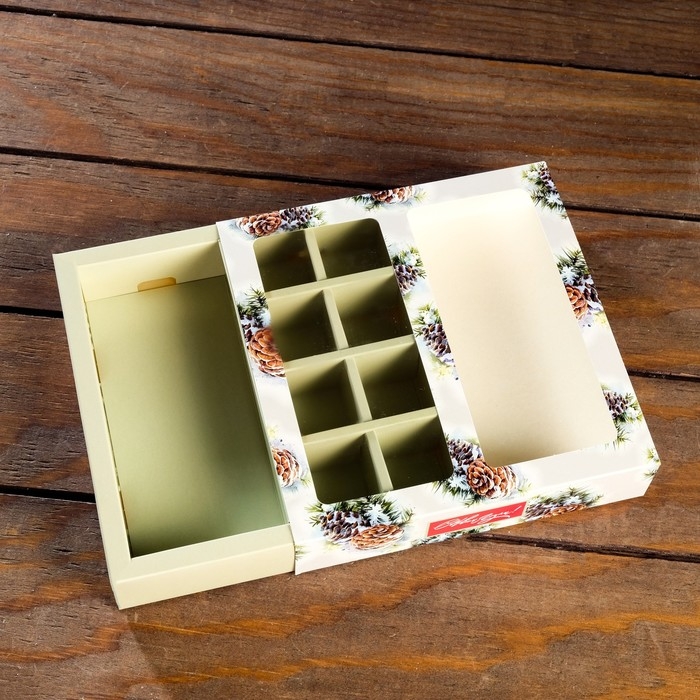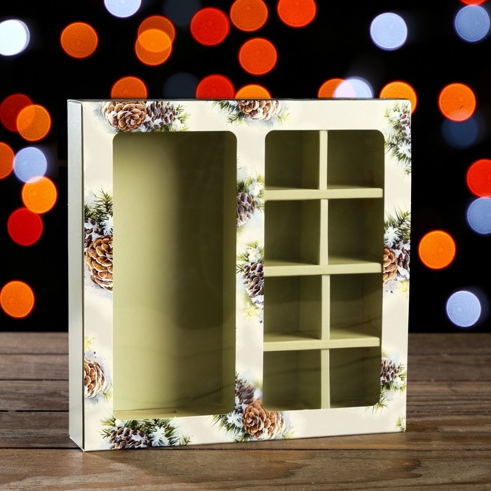 Новый год. Коробка под 8 конфет + шоколад, с окном, "Шишки",17,7 х 17,85 х 3,85 см
