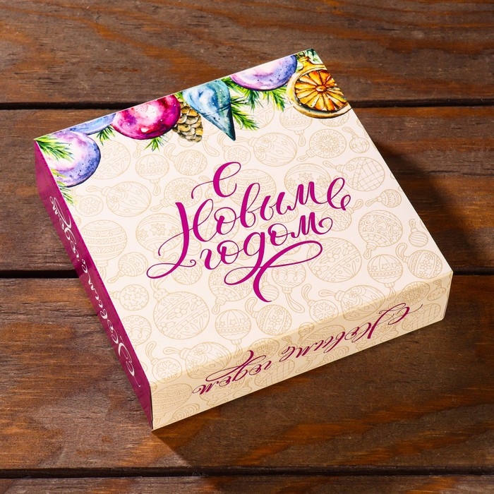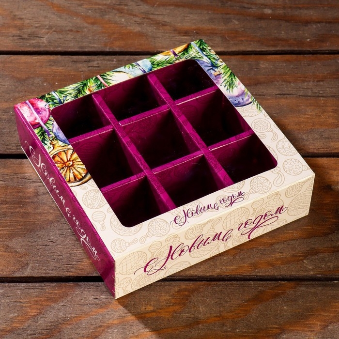Новый год. Коробка под 9 конфет с обечайкой "Елочные игрушки", 13,7 х 13,7 х 3,5 см