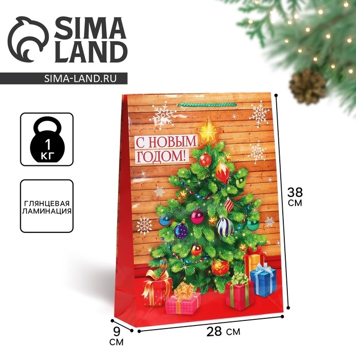 Пакет подарочный новогодний ламинированный «В кругу семьи», L 28 х 38 х 9 см, Новый год