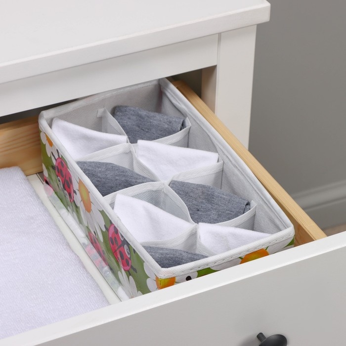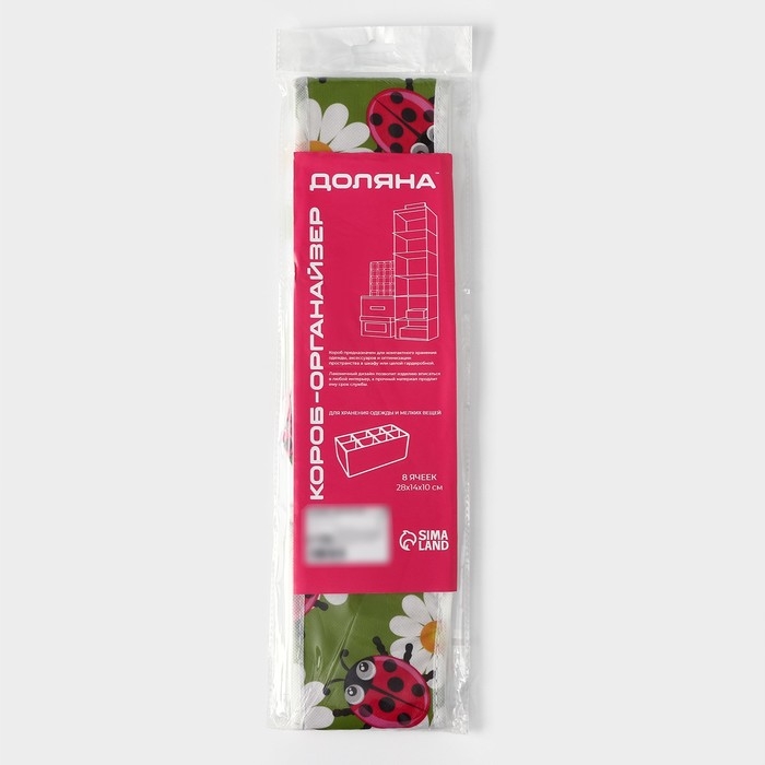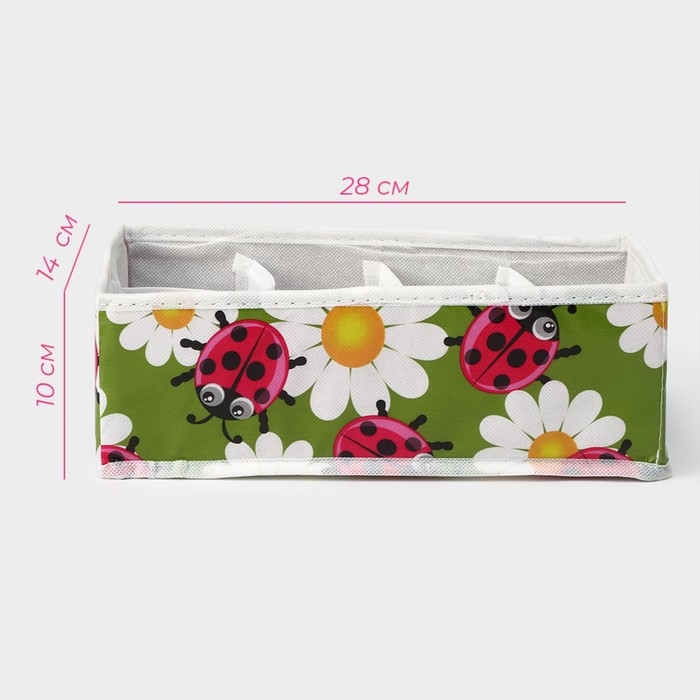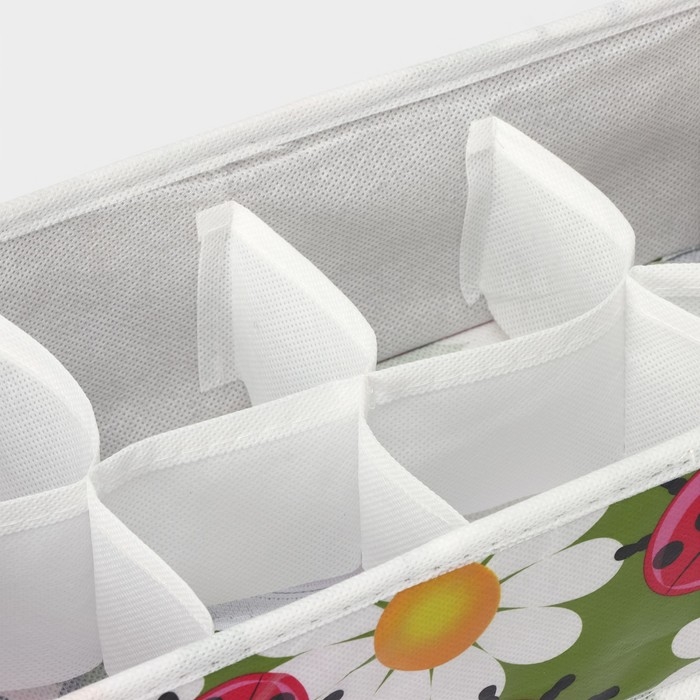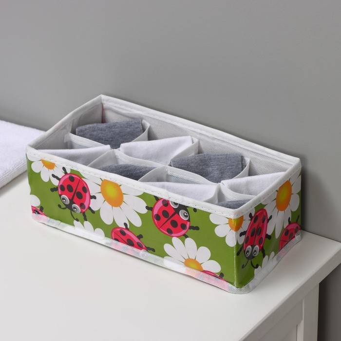 Органайзер для хранения белья Доляна «Божьи коровки», 8 ячеек, 28×14×10 см, цвет зелёный
