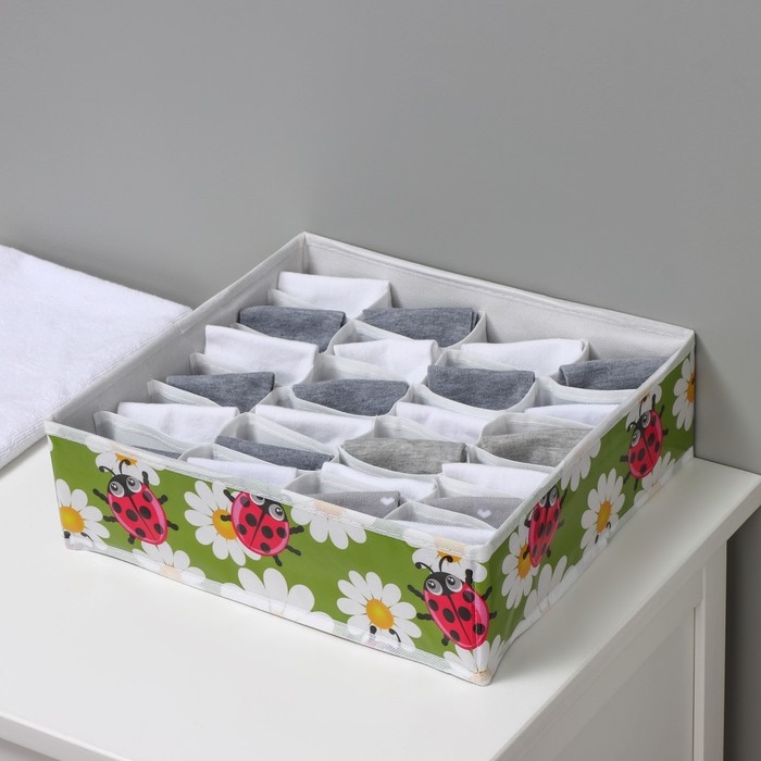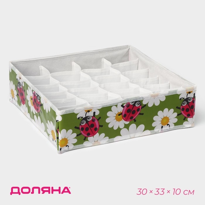 Органайзер для хранения белья Доляна «Божьи коровки», 24 ячейки, 30×33×10 см, цвет зелёный