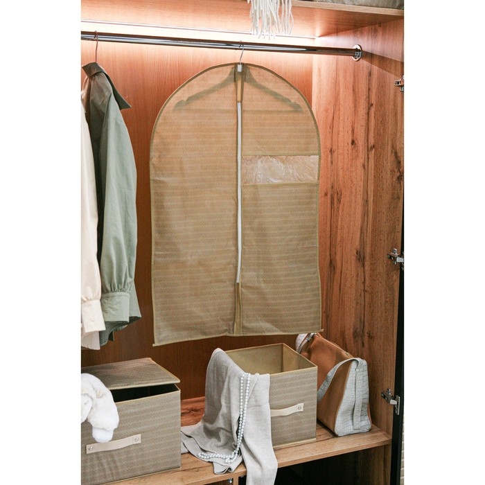 Чехол для одежды Доляна «Гусиная лапка», ПВХ окно, 90×60 см, цвет бежевый