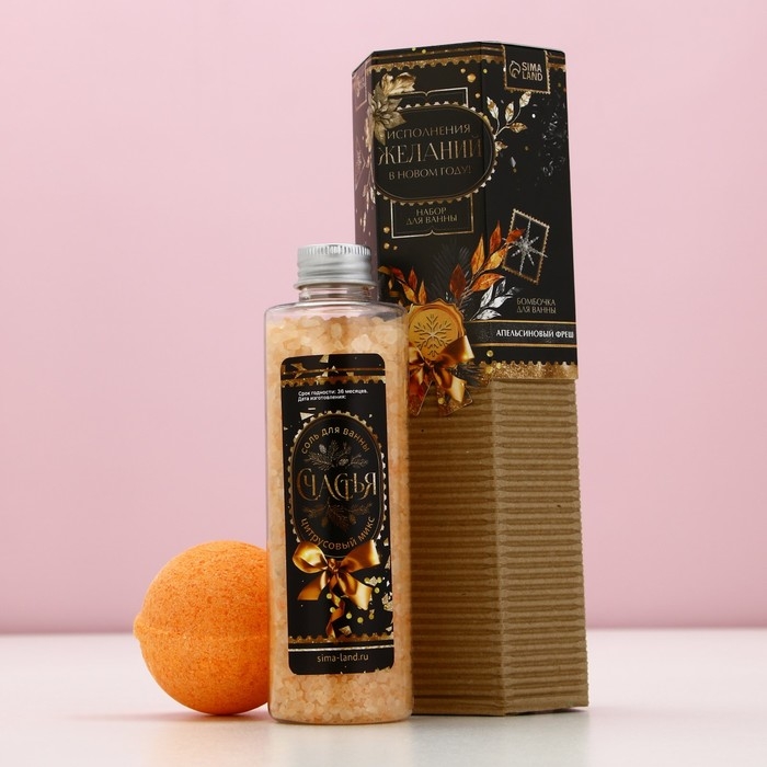 Подарочный набор косметики новогодний «Исполнения желаний!», соль для ванны 220 г и бомбочка для ванны 130 г, Новый Год