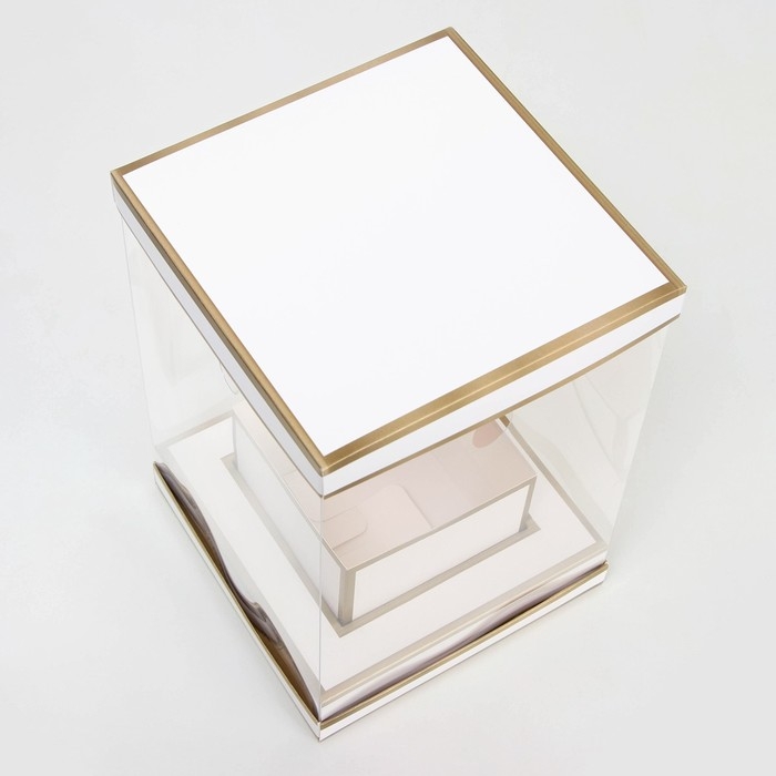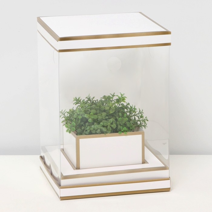 Коробка для цветов с вазой и PVC окнами складная, бронза, 16 х 23 х 16 см