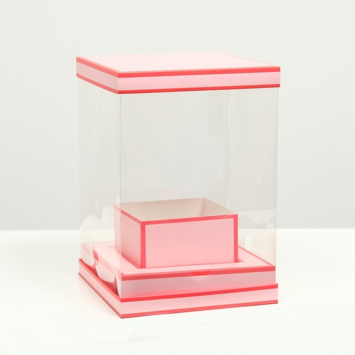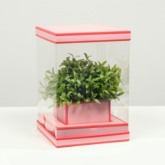 Коробка для цветов с вазой и PVC окнами складная, насыщенно-розовый, 16 х 23 х 16 см