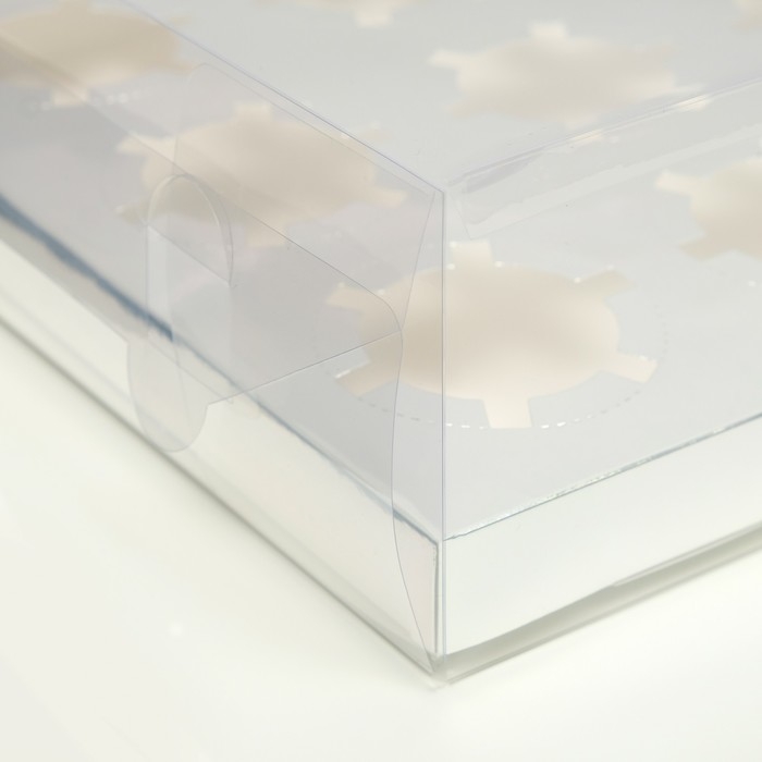 Упаковка для капкейков. Изготовлена из плотного картона и PVC. Используют для упаковки и транспортировки капкейков при доставке. Благодаря окошку можно рассмотреть товар внутри коробки, не открывая ее. Коробка имеет гладкую фактуру и текстуру, ее приятно держать в руках. При производстве применяется картон, соответствующий европейским стандартам качества. Упаковка не впитывает жир и устойчива к влаге, поэтому ее внешний вид не пострадает при хранении или перевозке.