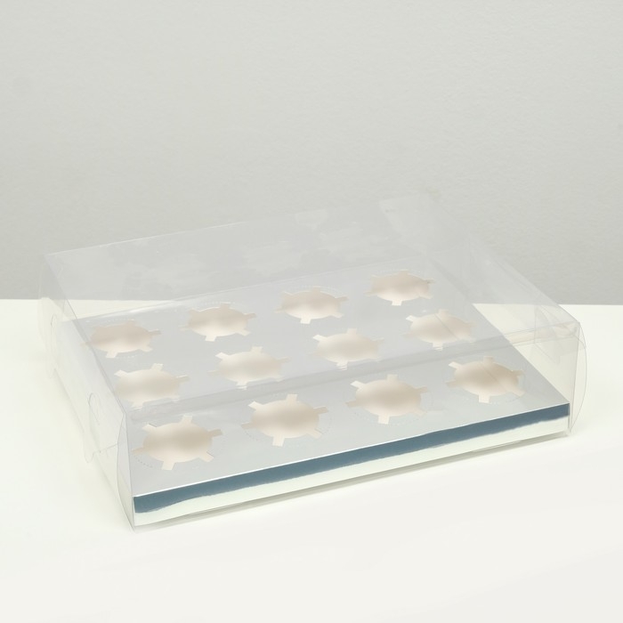 Коробка на 12 капкейков, серебро, 34,7 × 26,3 × 10 см