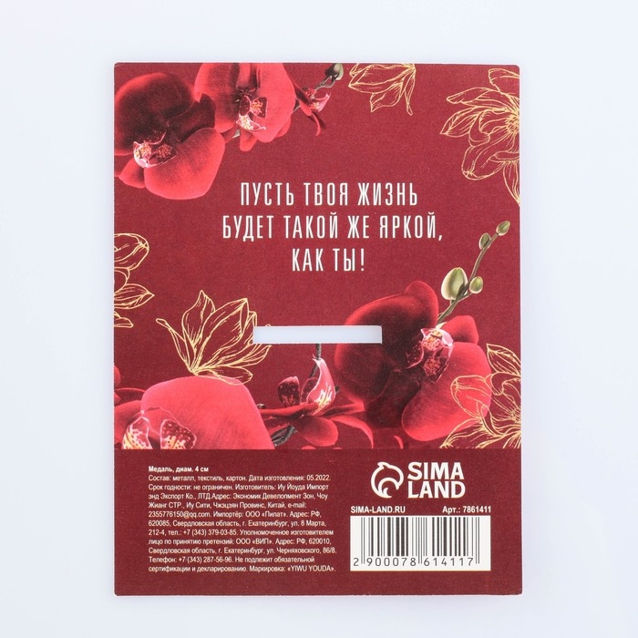 Медаль женская «Королева красоты», d=4 см