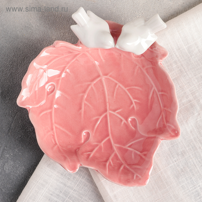 Блюдо керамическое «Голубки на листочке», 16×6,5 см, цвет розовый