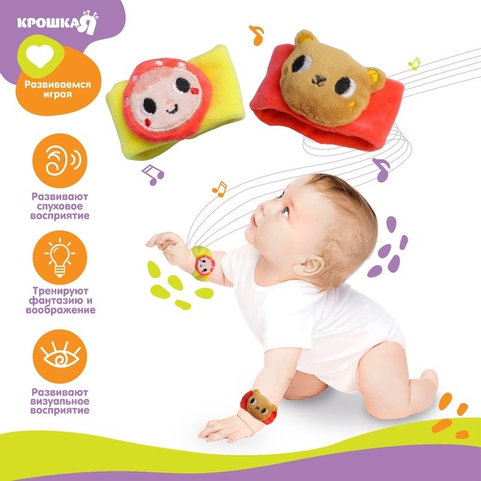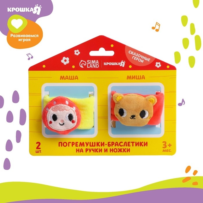 Набор браслеты - погремушки «Маша и медведь», 2 шт, Крошка Я