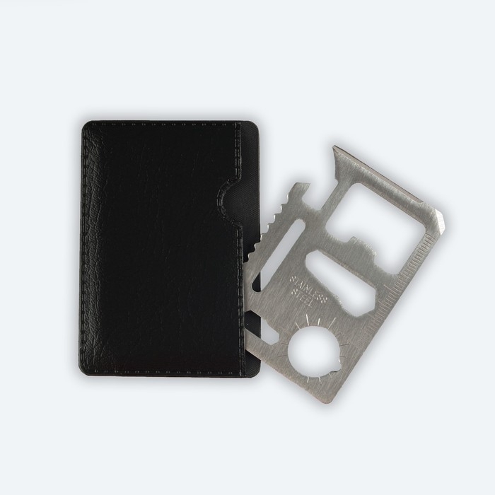 Схема функционала представлена на обороте подарочной открытки. В комплекте идет специальный чехол для ножа, изготовленный из эко кожи.