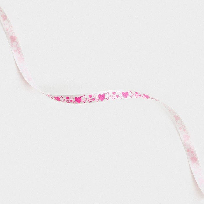 Лента упаковочная пластиковая «Сердечки и звездочки», белая, 0.5 см х 200м