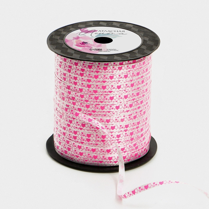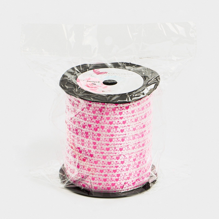 Лента упаковочная пластиковая «С любовью», розовая, 1,8 см х 45 м