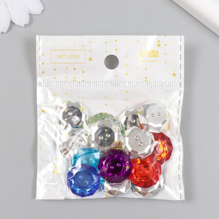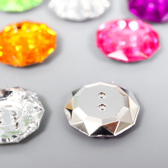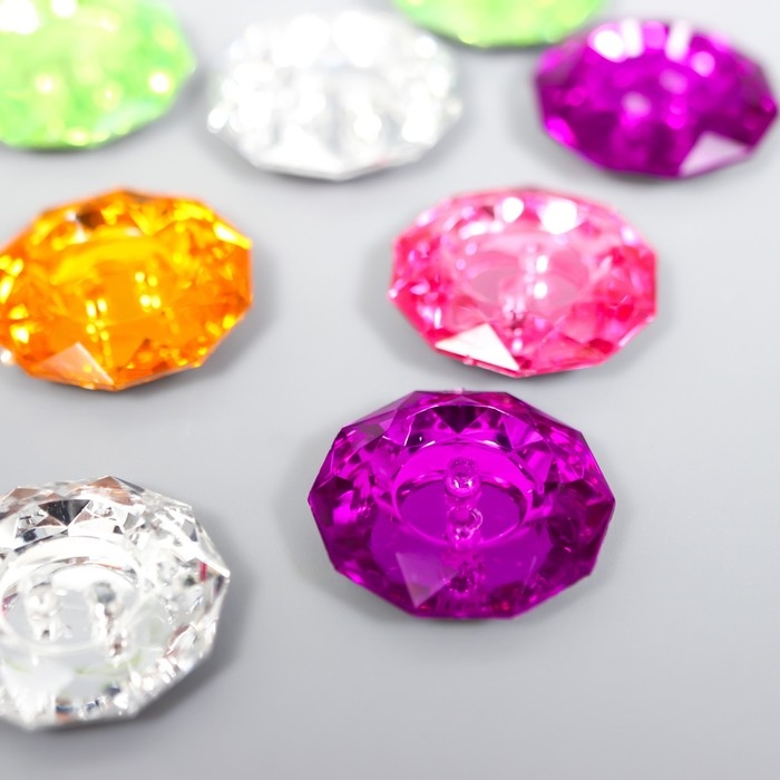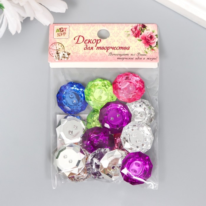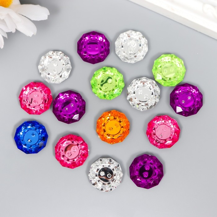 Пуговицы пластик для творчества 2 прокола "Кант страз" набор 15 шт МИКС d=1,8 см