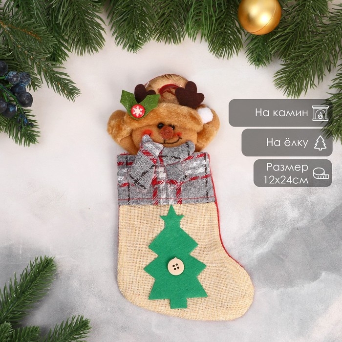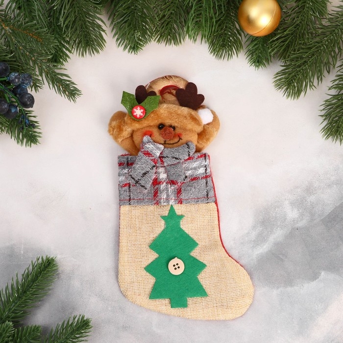Носок для подарков "Лосяш и ёлочка" 12х24 см, бежевый