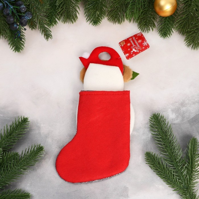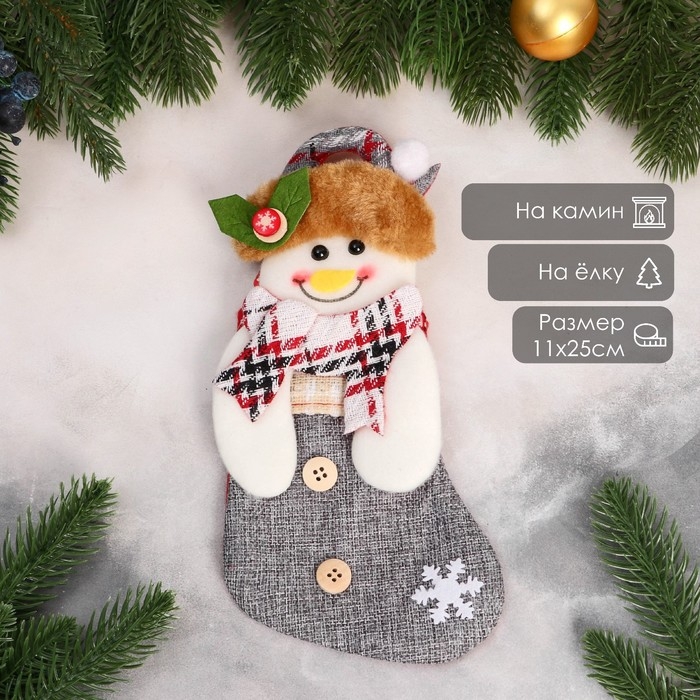 Носок для подарков "Снеговик с ягодкой" 11х26 см, бело-серый