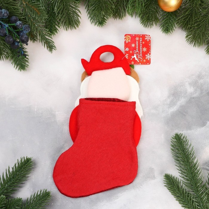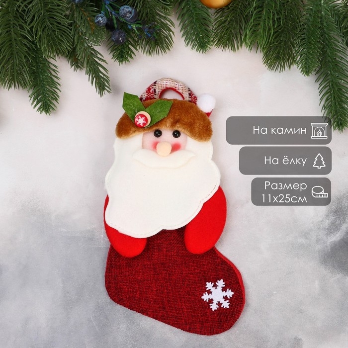Носок для подарков "Дед Мороз с ягодкой" 11х26 см, бело-красный
