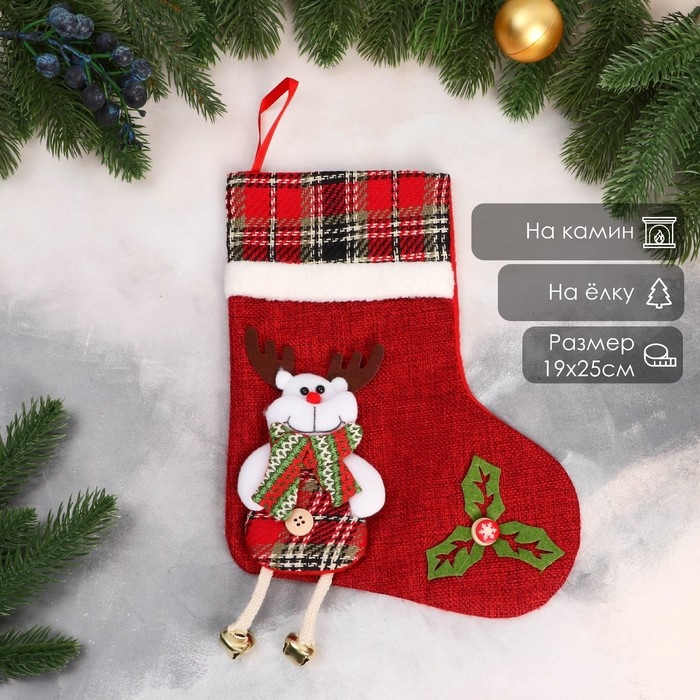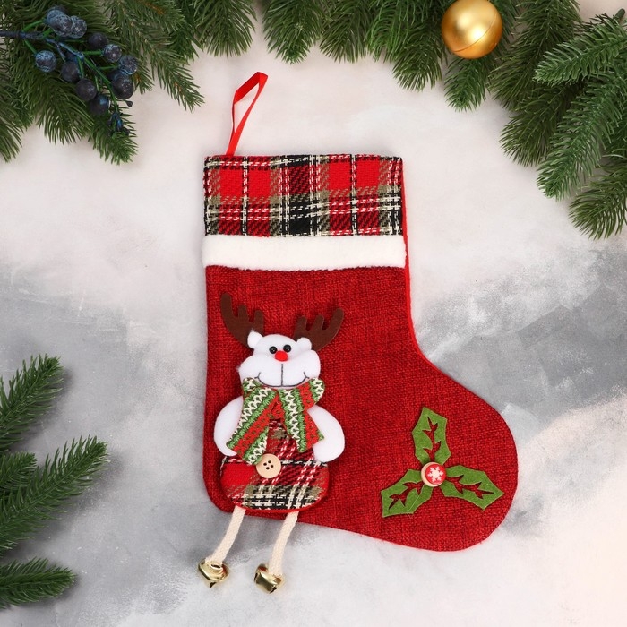 Носок для подарков "Лосяш с длинными ножками" 19х25 см, красный