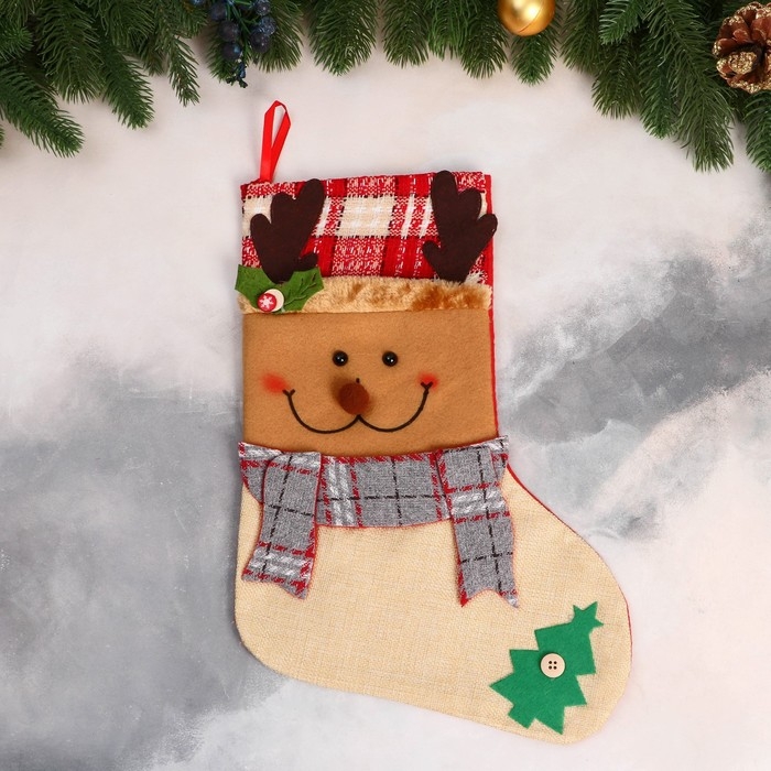 Носок для подарков "Лосяш с румяными щечками" 25х36 см, бежевый