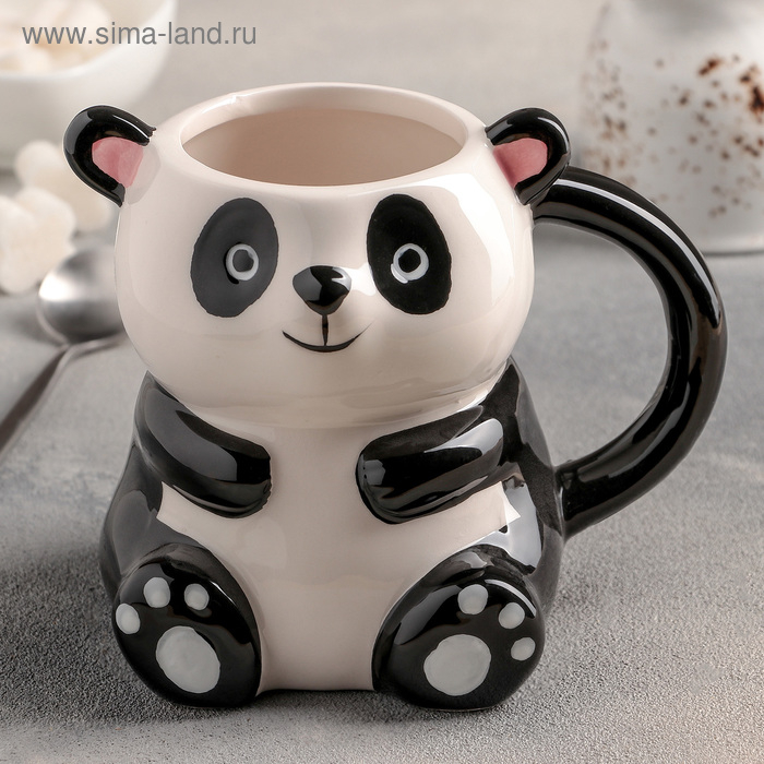 Кружка керамическая «Панда», 480 мл, цвет белый и чёрный
