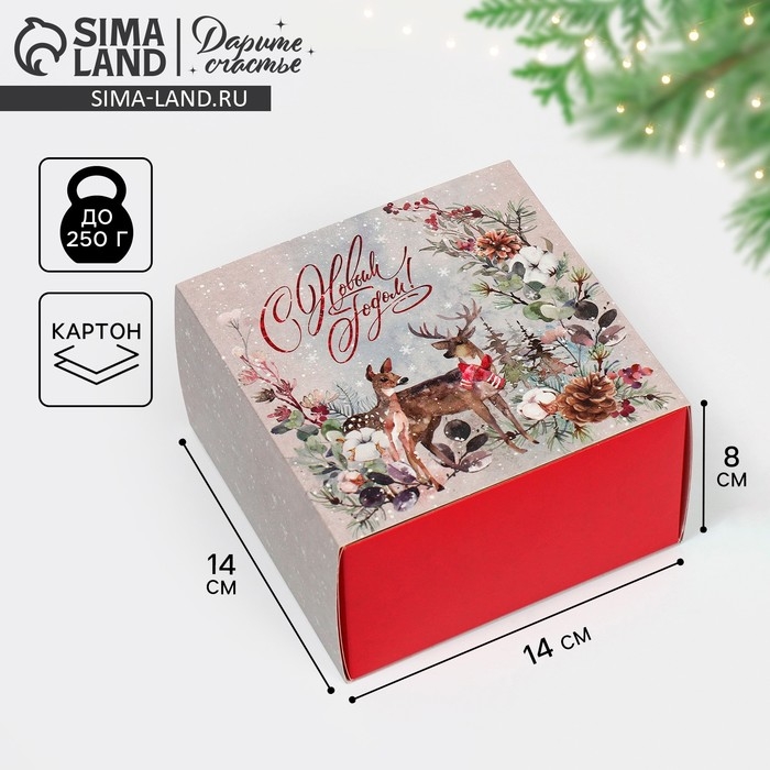 Коробка подарочная новогодняя складная «Новогодняя акварель», 14 х 14 х 8 см, Новый год