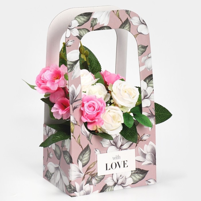 Коробка-переноска для цветов «С любовью», 17 × 12 × 32 см