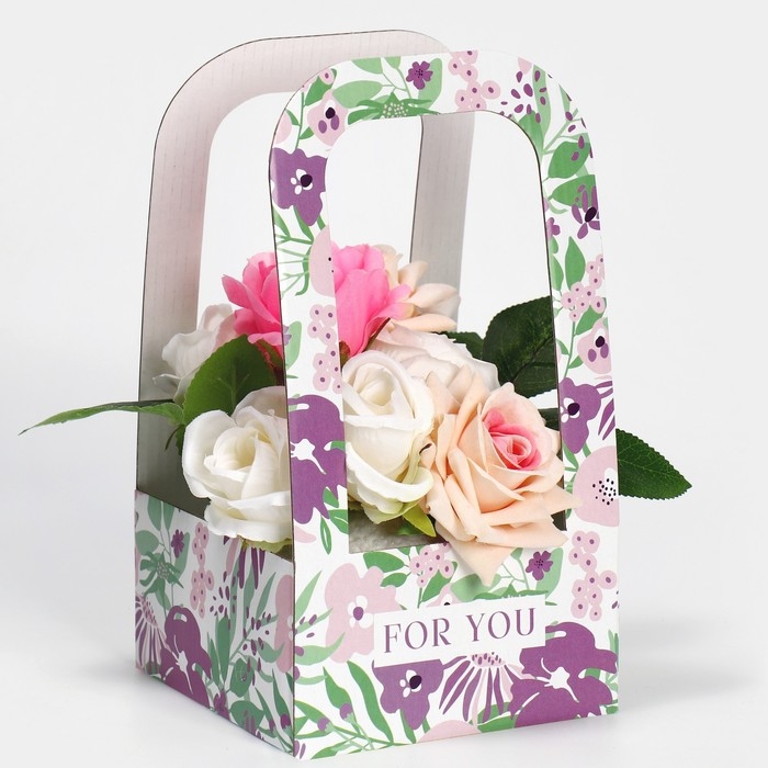 Коробка-переноска для цветов «Only for you», 12 × 12 × 22 см