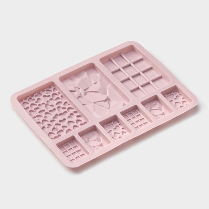 Форма для шоколада Доляна «Шоколадное ассорти», силикон, 20×15 см, 9 ячеек, цвет розовый