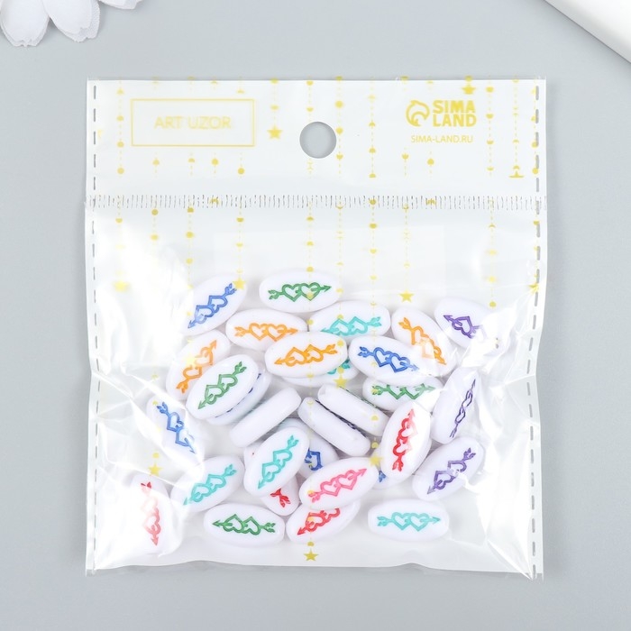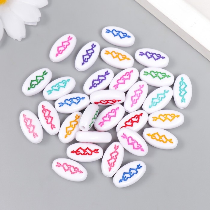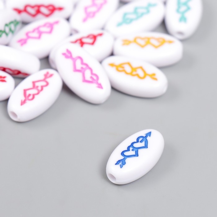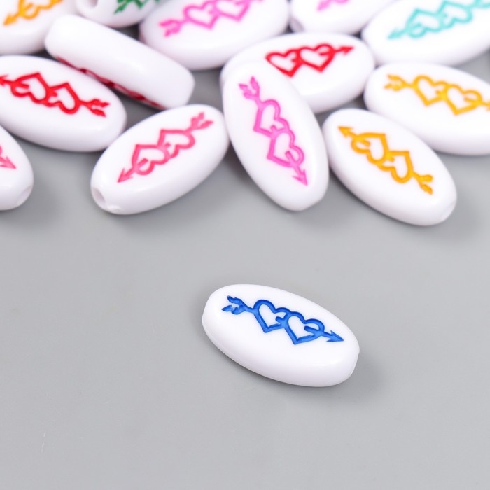 Набор бусин для творчества пластик "Два сердца со стрелой овал" цветные 20 гр 0,4х0,6х1,8 см 78115