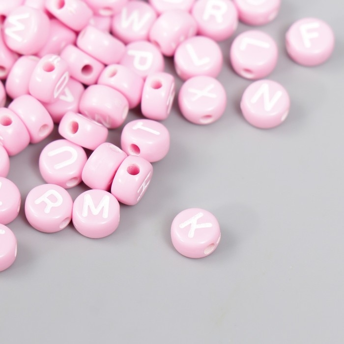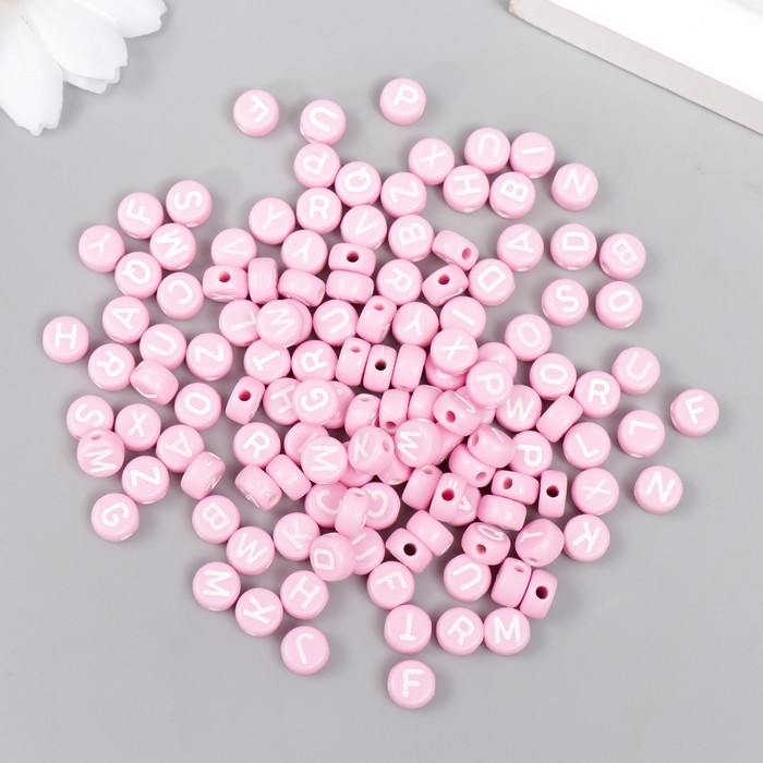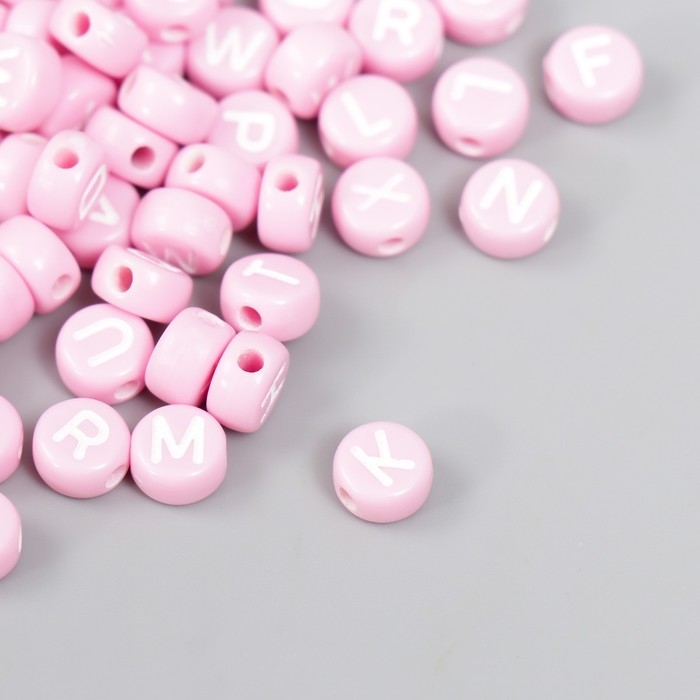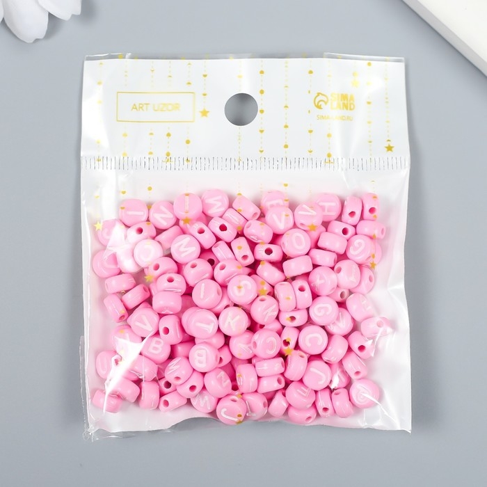 Бусины для творчества пластик "Английские буквы" розовые набор 20 гр 0,4х0,7х0,7 см