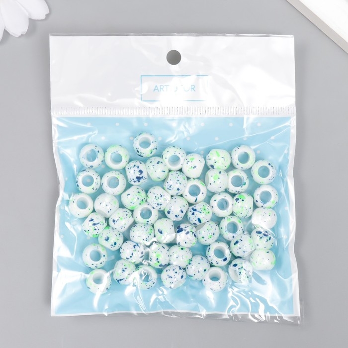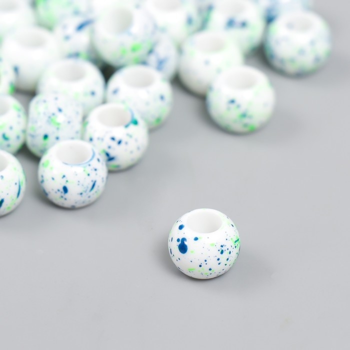 Бусины для творчества пластик "Брызги краски. Синие на белом" d=1 см набор 20 гр