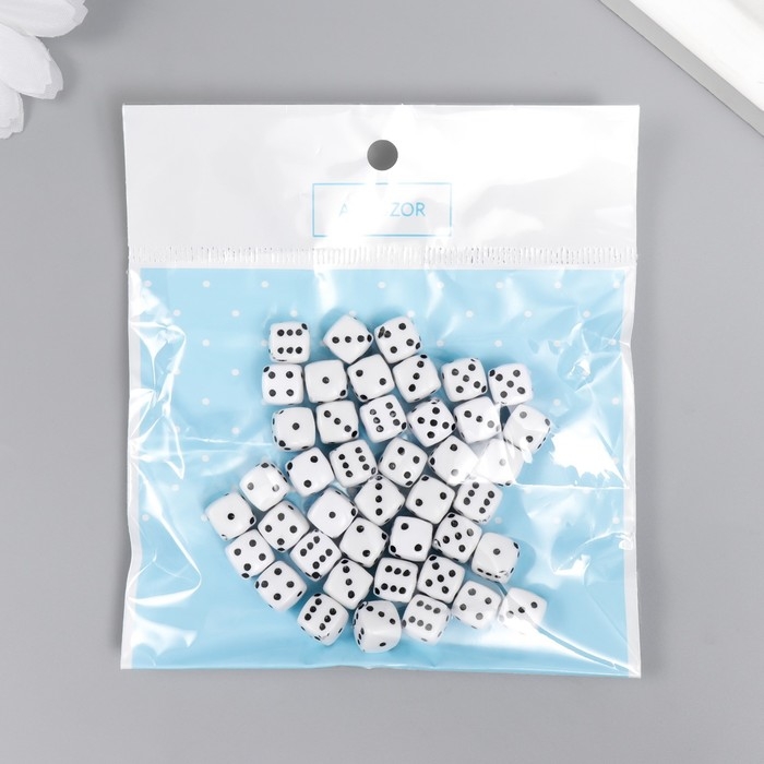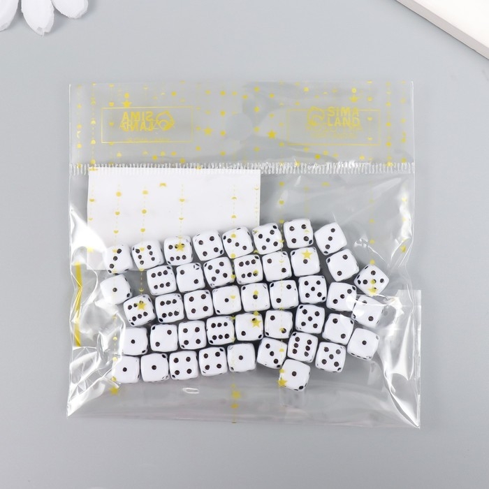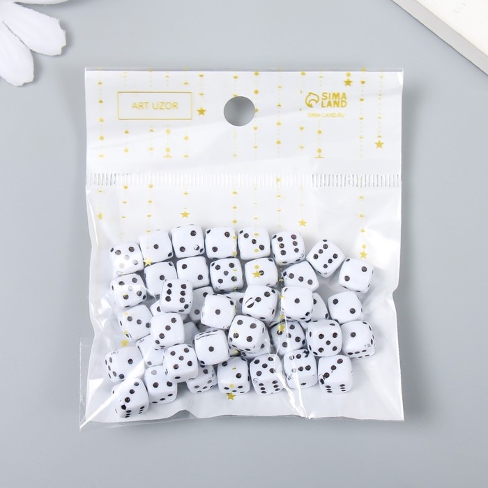 Бусины для творчества пластик "Белый игральный кубик" чёрные точки набор 20гр 0,8х0,8х0,8 см 78118