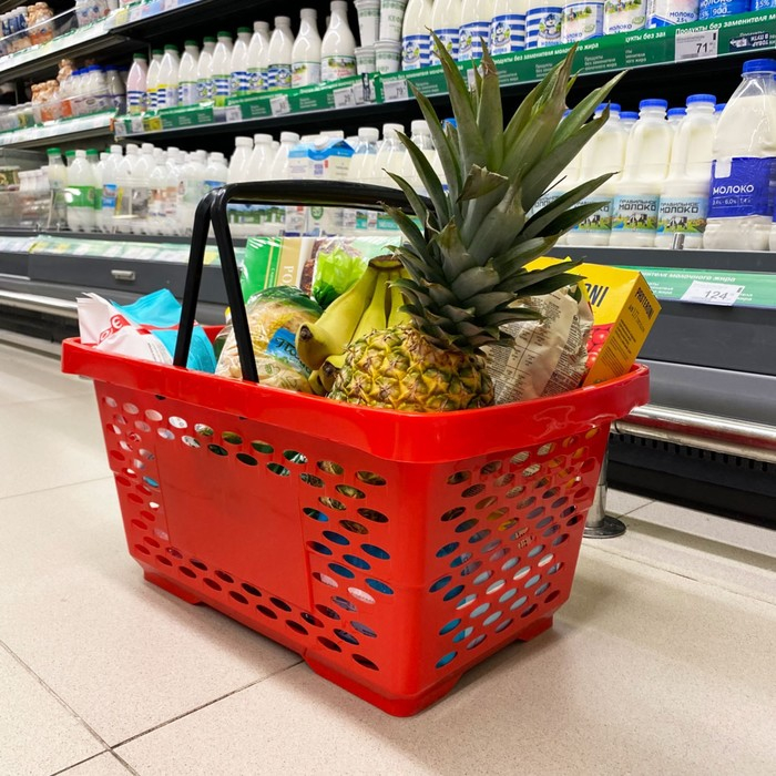 Корзина покупательская пластиковая, 20 л, 2 пластиковые ручки, цвет красный