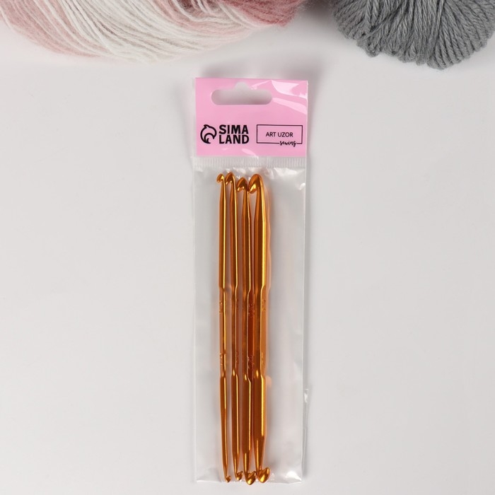 Набор двусторонних крючков для вязания, d = 1/2,3/4,5/6,7/8 мм, 13,5 см, 4 шт, цвет золотой