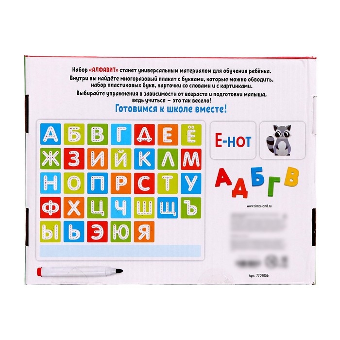 Развивающий набор «Алфавит» станет универсальным материалом для обучения ребёнка. Внутри вы найдёте многоразовый плакат с буквами, маркер, 33 пластиковые буквы, 64 карточки со словами и картинками.