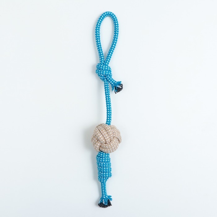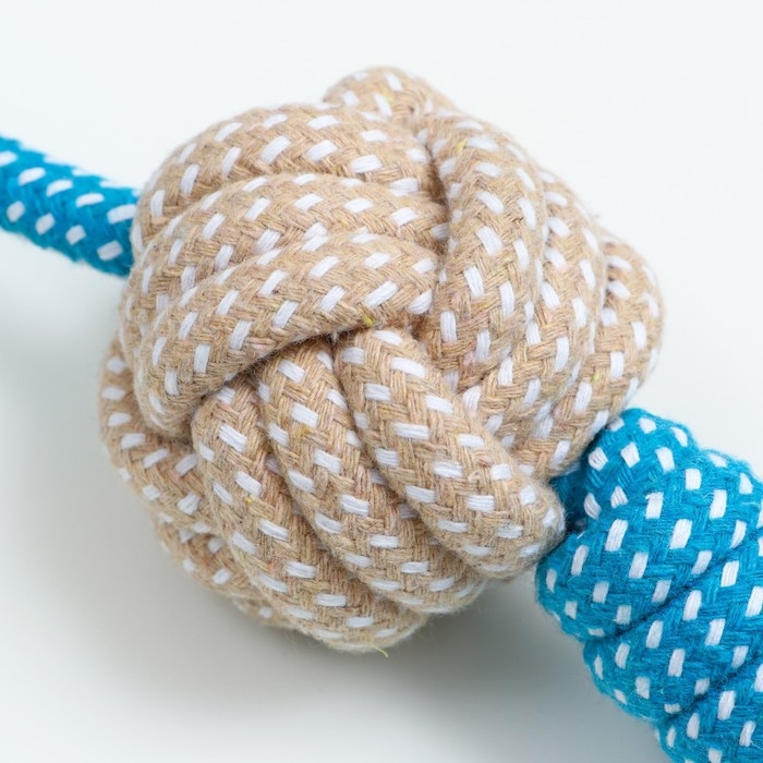 Игрушка канатная плетеная с ручкой, до 40 см, 90 г, синяя/жёлтая/белая
