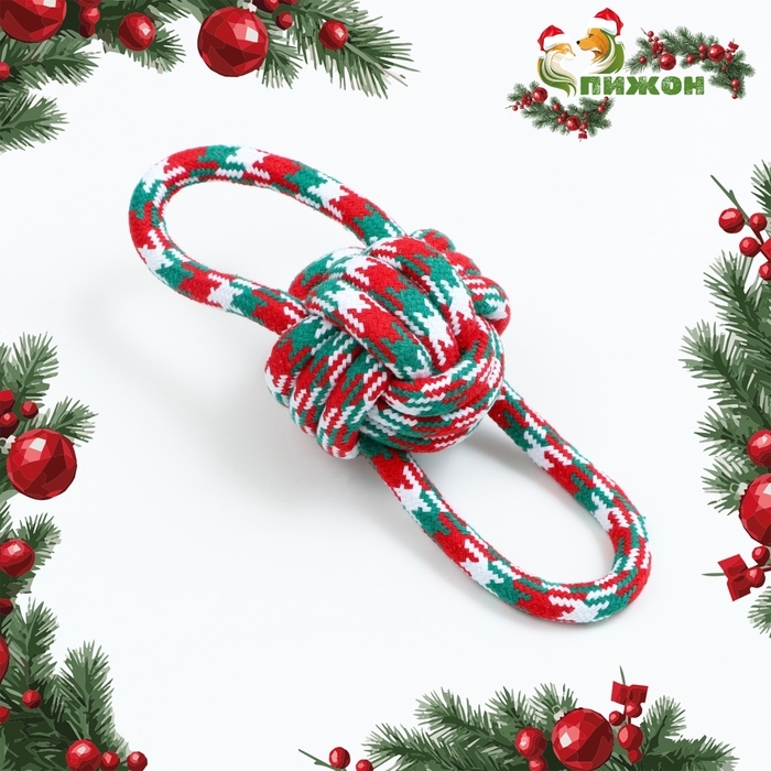 Игрушка канатная "Новогоднее кольцо", до 12 см, до 85 г, зелёная/красная