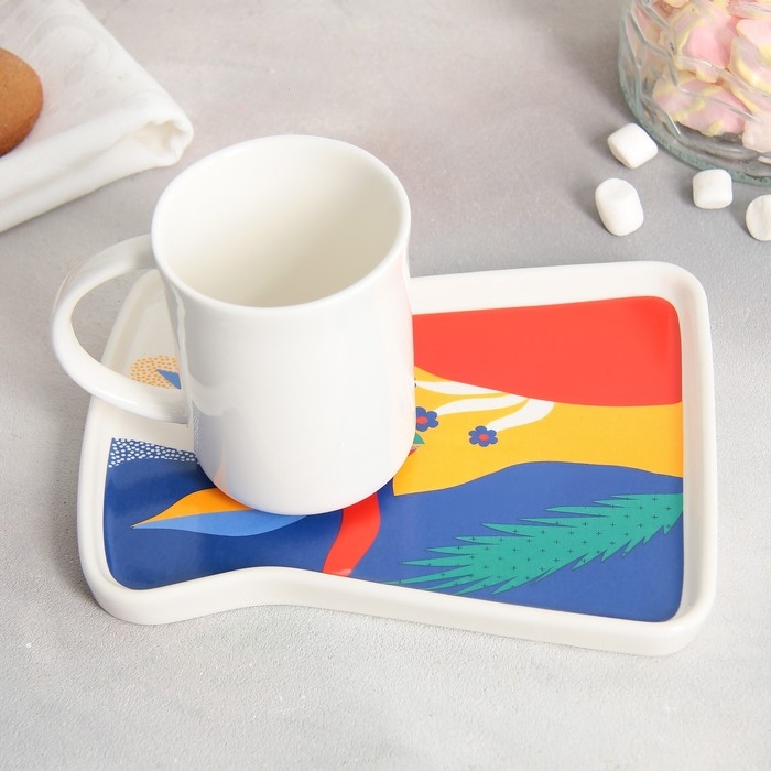Чайная пара керамическая «Абстракция», кружка 200 мл, блюдце 17.8х13.3 см, цвет белый