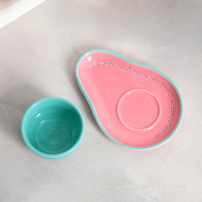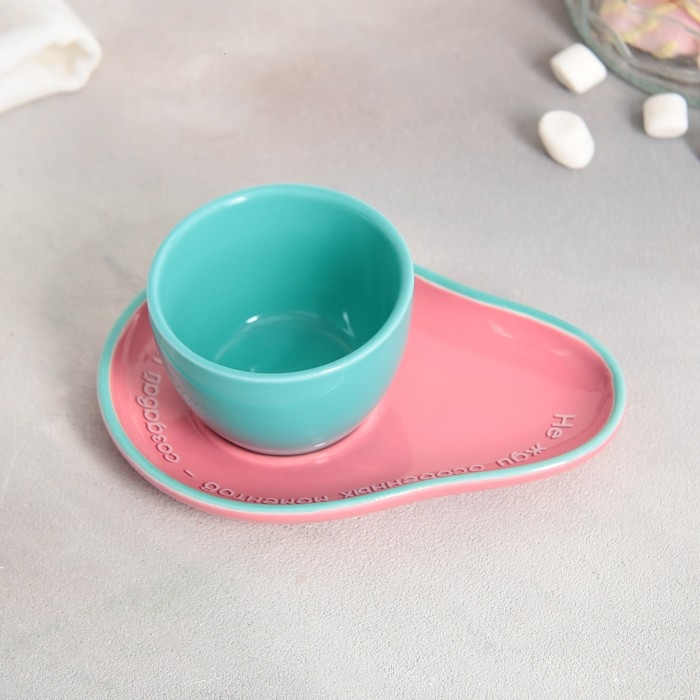 Чайная пара керамическая «Моменты », кружка 100 мл, блюдце 14х10 см, цвет голубой