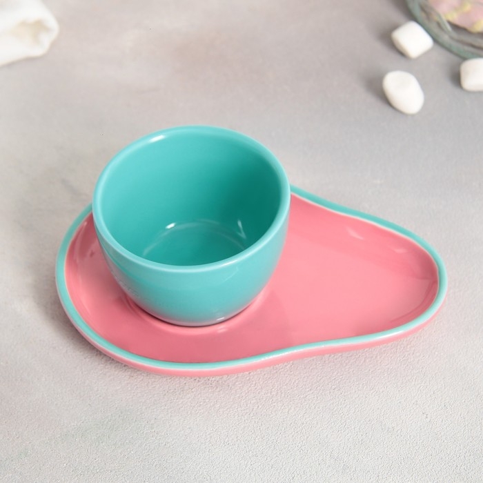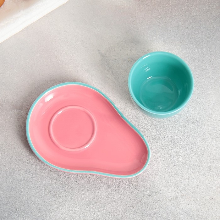 Чайная пара керамическая Avocado, кружка 100 мл, блюдце 14х10 см, цвет голубо-розовый