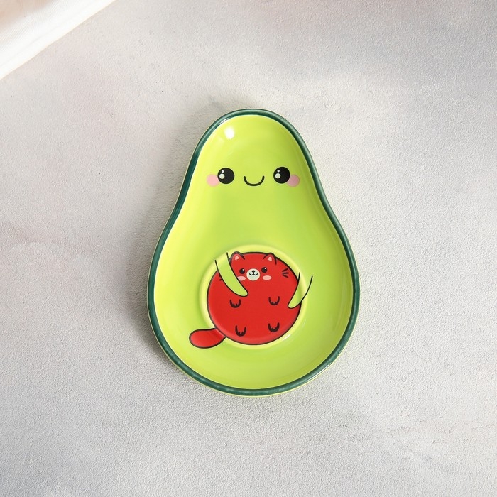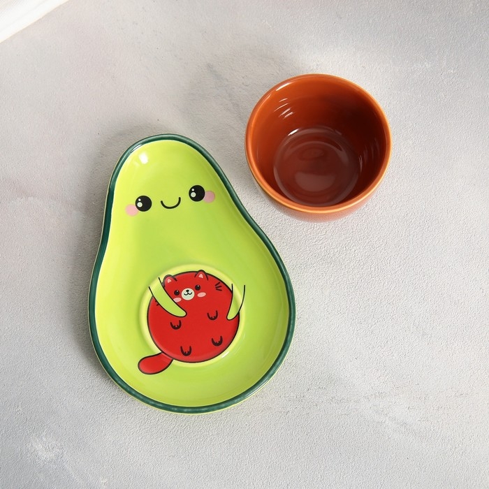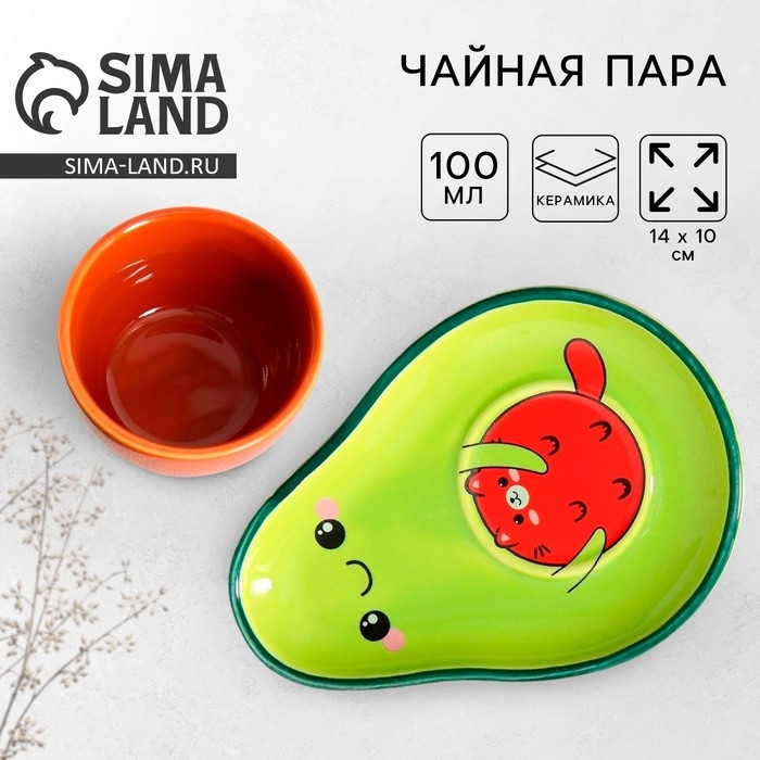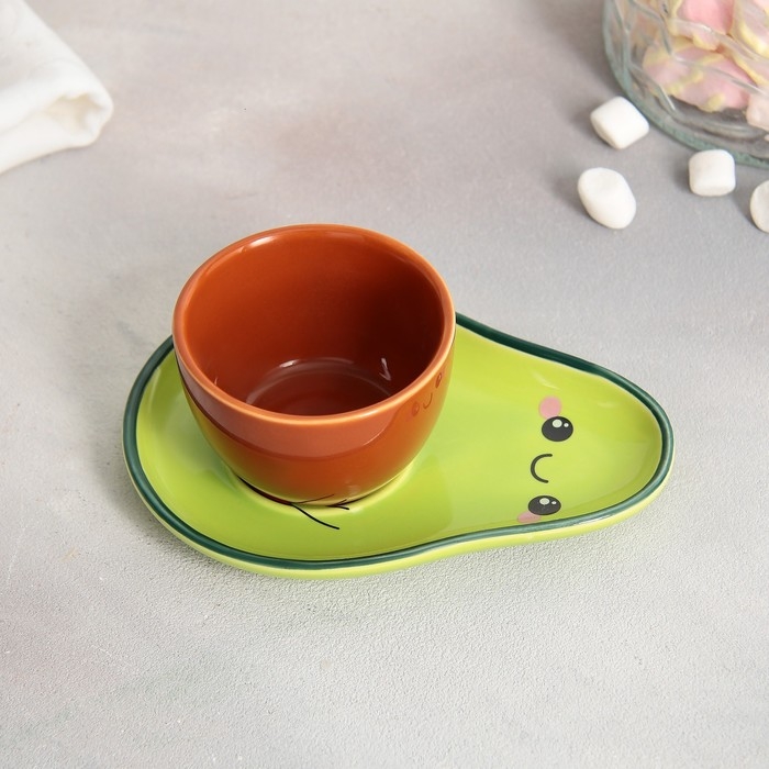 Чайная пара керамическая «Авокотя», кружка 100 мл, блюдце 14х10 см, цвет зелёный-коричневый