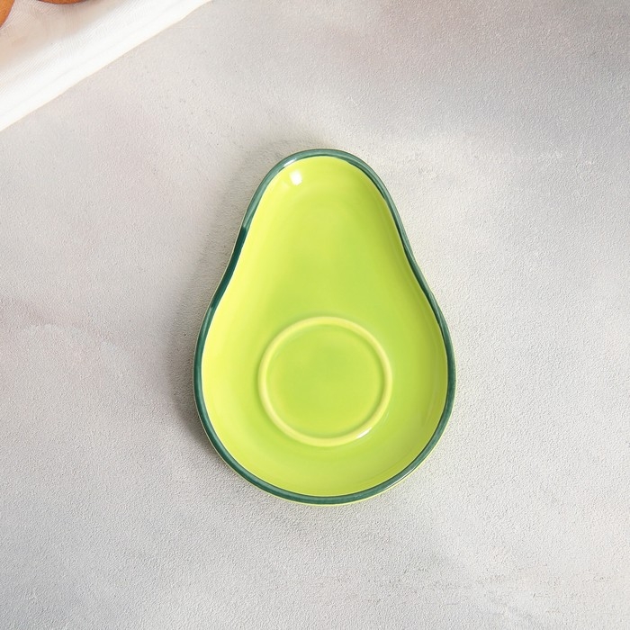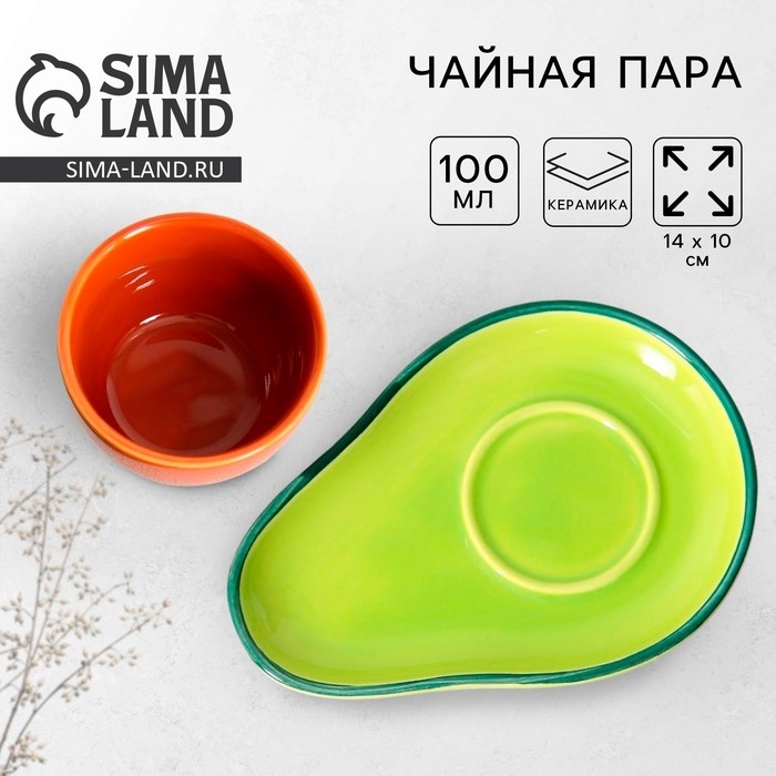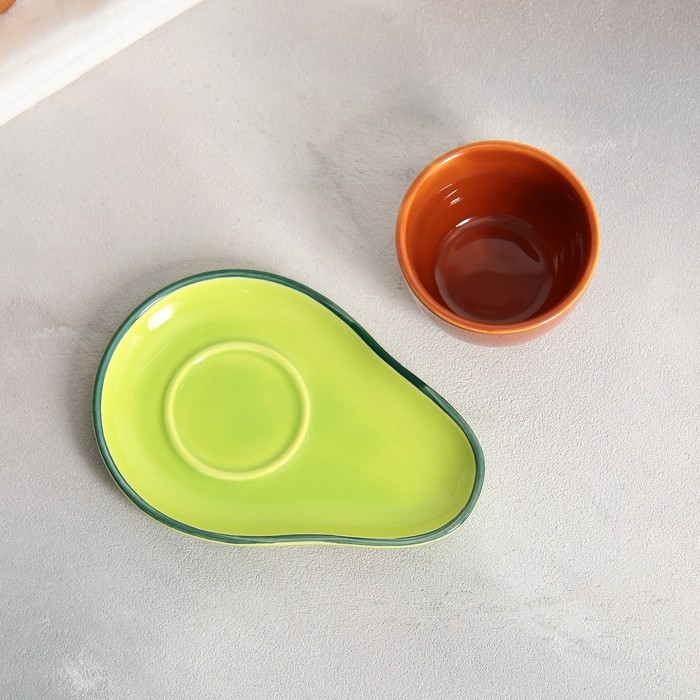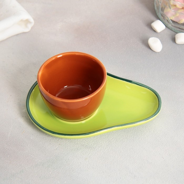 Чайная пара керамическая «Авокадо», кружка 100 мл, блюдце 14х10 см, цвет зелёный-коричневый