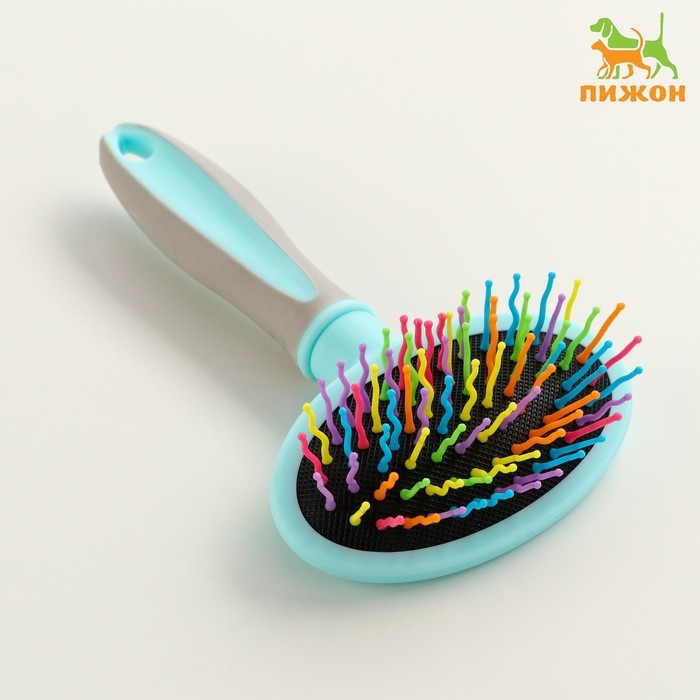 Пуходерка пластиковая мягкая с волнистыми зубьями, средняя, 9,5 х 16,5 см, мятная