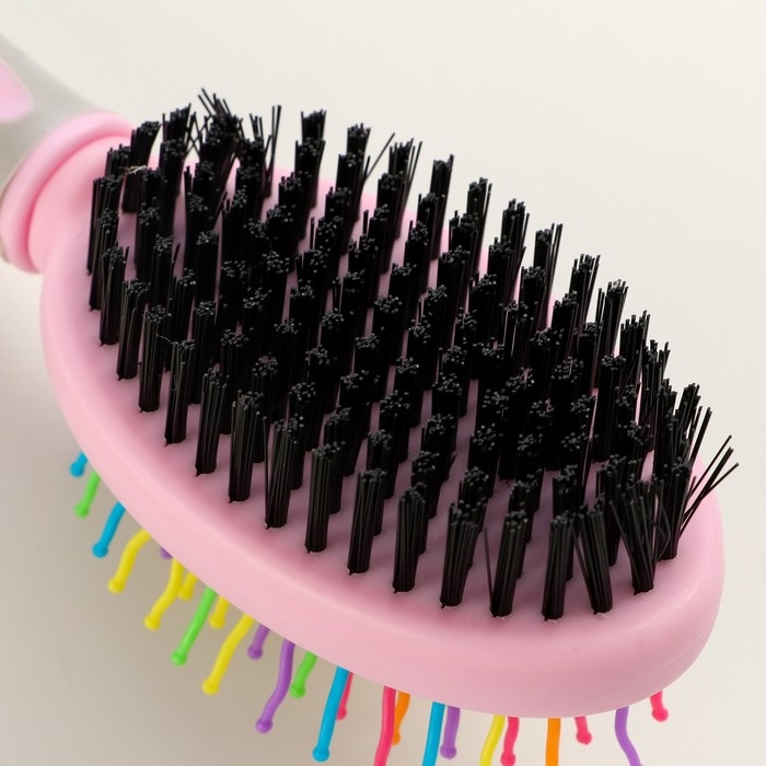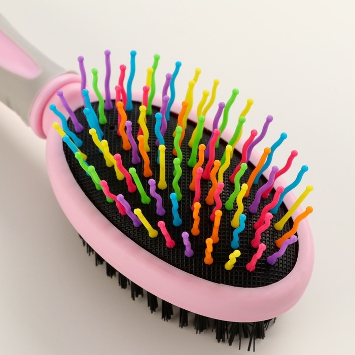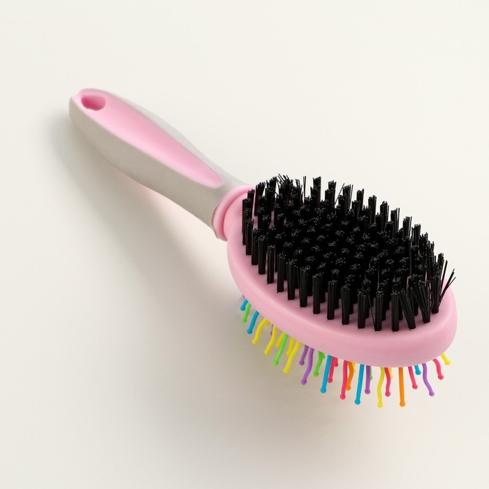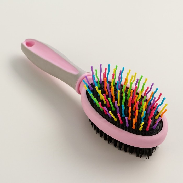Двусторонняя щётка - расческа с волнистыми зубьями, средняя, 6 х 19 см, розовая