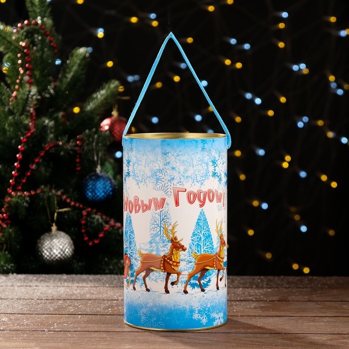 Новый год. Подарочная коробка, тубус «Тройка оленей» 120 х 220 мм (200 мм внутр. высота).