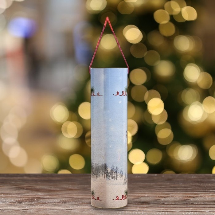 Подарочная туба выполнена из плотного картона и металла. Изделие оформлено красочным изображением. Туба оснащена крышкой. В комплект входит подвесное декоративное украшение.