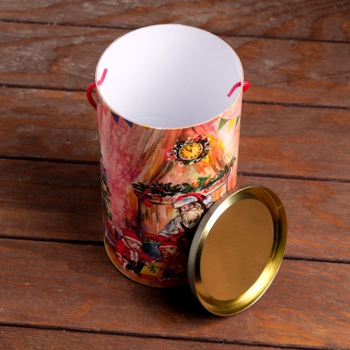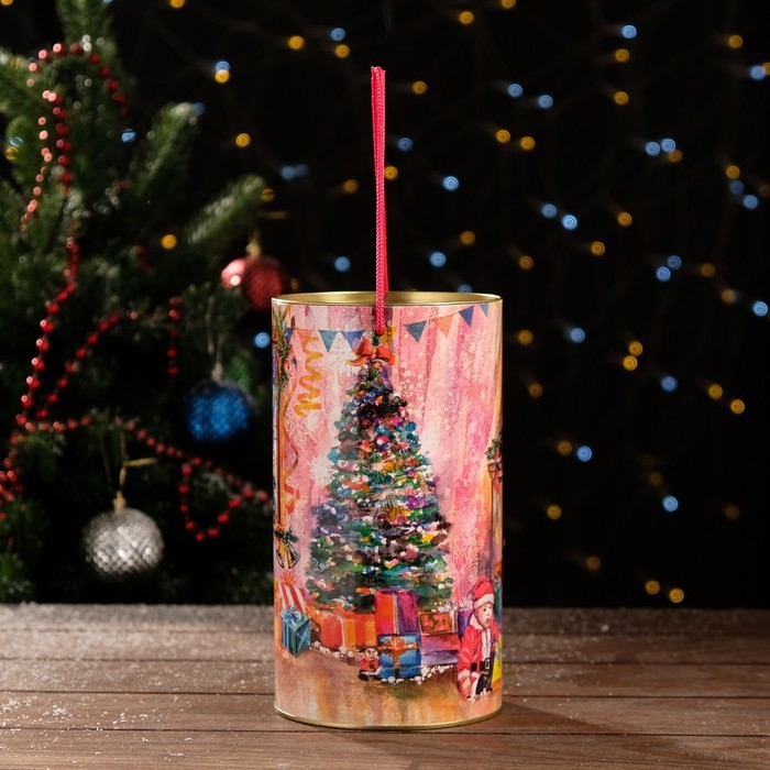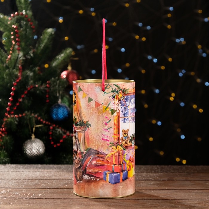 Подарочная туба выполнена из плотного картона и металла. Изделие оформлено красочным изображением. Туба оснащена крышкой. В комплект входит подвесное декоративное украшение.